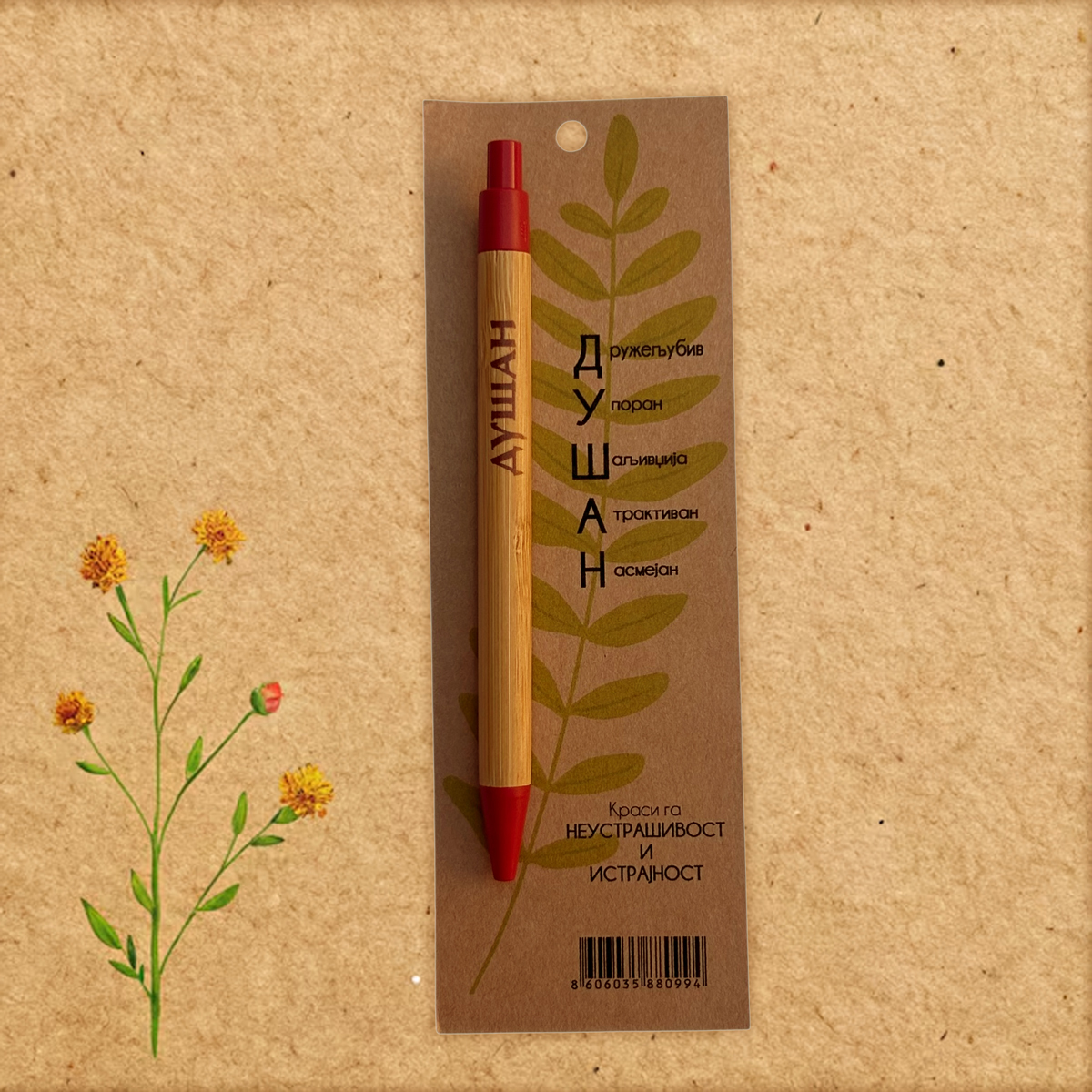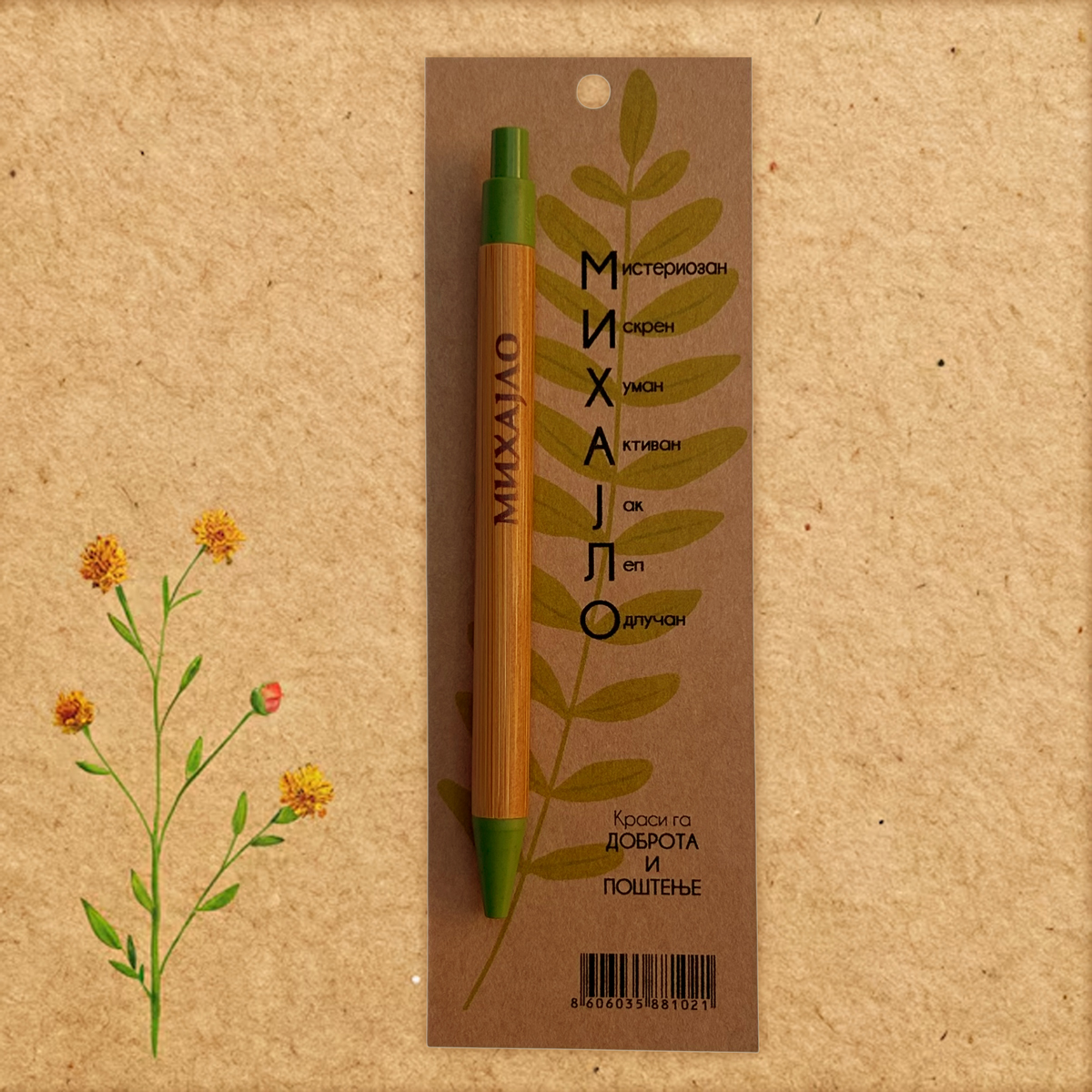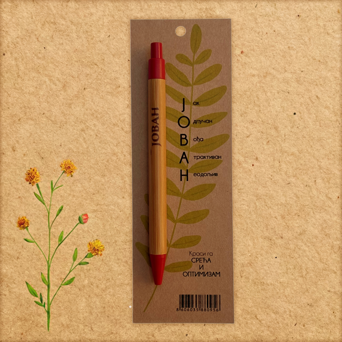 Početna / Hemijske olovke sa imenima po želji / Olovke sa muškim imenima po želji Olovke sa muškim imenima po želji 0 289 RSD Olovka od bambusa, sa imenom i osobinama, na kraft papiru. Originalni poklon. Želim olovku sa imenom Select an option... Nikola Luka Marko Stefan Aleksa Lazar Aleksandar Filip Nemanja Jovan Petar Ðorđe Ognjen Dušan Vuk Mateja Mihajlo Mihailo Strahinja Dimitrije Vukašin Pavle Miloš Uroš Ako niste našli ime koje želite, upišite ga ovde (zajedno sa osobinama)... (+200 RSD) Olovke sa muškim imenima po želji količina Dodaj u korpu SKU: OL-02 Kategorija: Hemijske olovke sa imenima po želji Oznaka: muske Brand: Klodovik Opis Dodatne informacije Recenzije (0) Opis Početna slova na olovci su lepe karakteristike imena. Dodatne informacije Dimenzije 6 × 18 cm Recenzije Još nema recenzija. Budi prvi koji će recenzirati “Olovke sa muškim imenima po želji” Poništi odgovorVaša email adresa neće biti objavljivana. Neophodna polja su označena sa *Naziv * Email * Vaša ocjena * Ocijeni… Odlično Dobar Prosjećan Zadovoljavajući Jako loš Vaša recenzija: * Sačuvaj moje ime, email i web stranicu u ovom browseru za buduće komentare. Povezani proizvodi e-shopHemijske olovke sa imenima po želji Olovke sa ženskim imenima po želji Olovka od bambusa, sa imenom i osobinama, na kraft papiru. Originalni poklon. 0