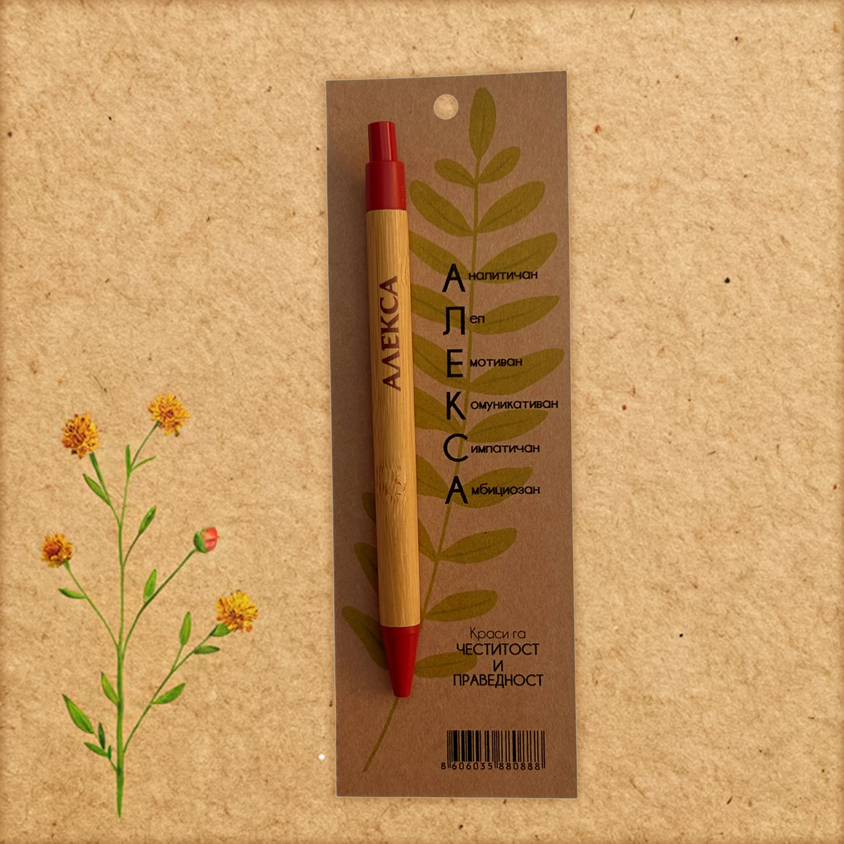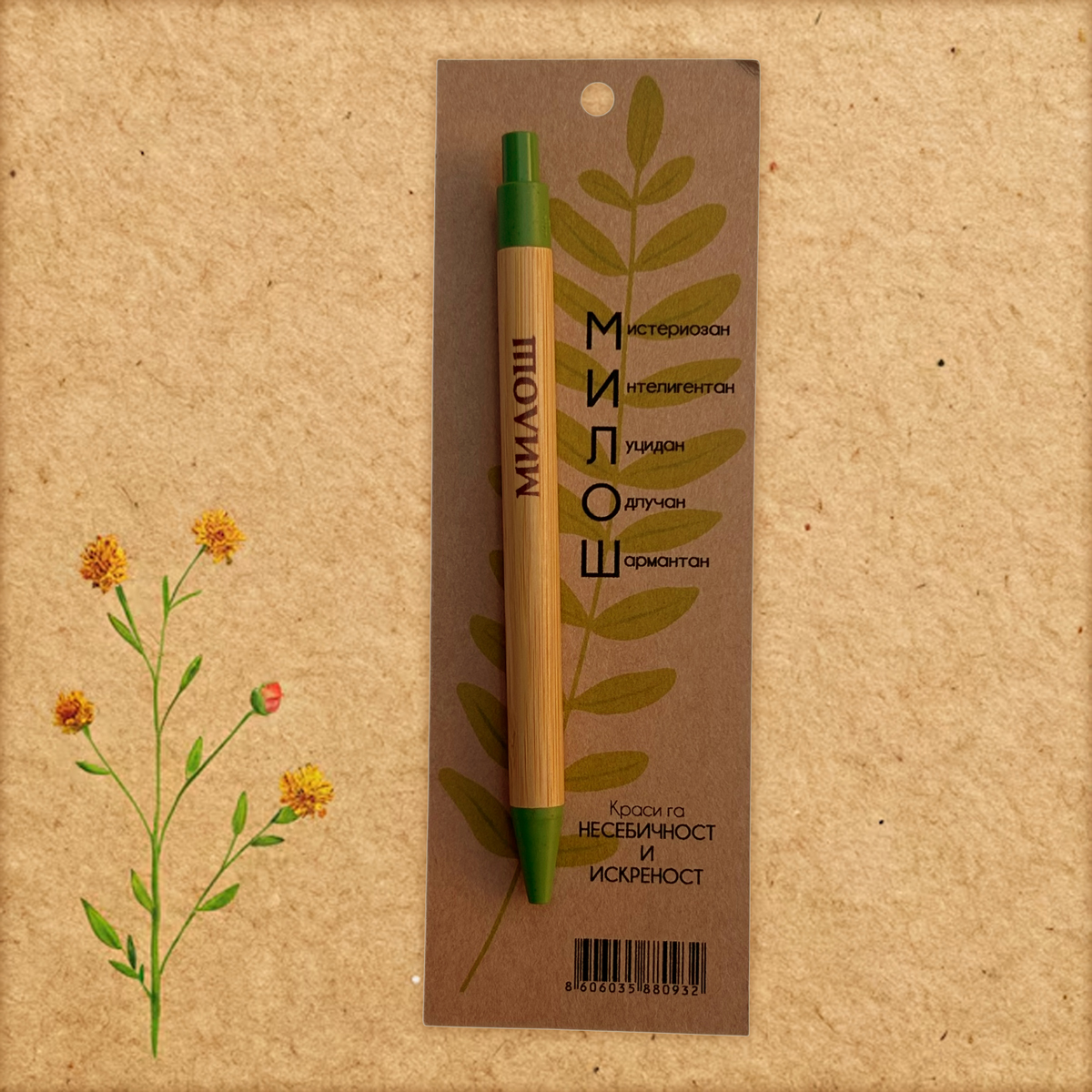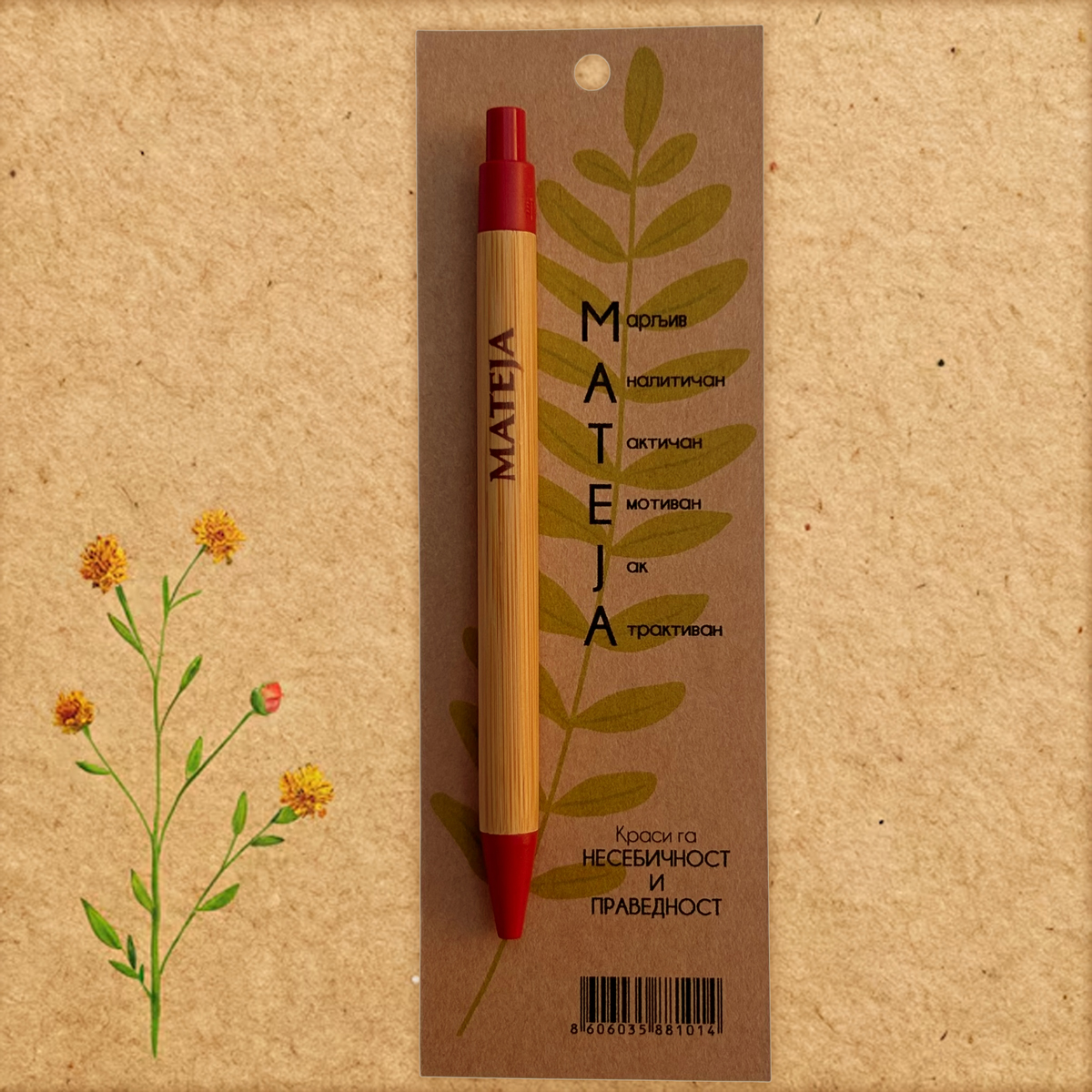 Početna / Hemijske olovke sa imenima po želji / Olovke sa muškim imenima po želji Olovke sa muškim imenima po želji 0 289 RSD Olovka od bambusa, sa imenom i osobinama, na kraft papiru. Originalni poklon. Želim olovku sa imenom Select an option... Nikola Luka Marko Stefan Aleksa Lazar Aleksandar Filip Nemanja Jovan Petar Ðorđe Ognjen Dušan Vuk Mateja Mihajlo Mihailo Strahinja Dimitrije Vukašin Pavle Miloš Uroš Ako niste našli ime koje želite, upišite ga ovde (zajedno sa osobinama)... (+200 RSD) Olovke sa muškim imenima po želji količina Dodaj u korpu SKU: OL-02 Kategorija: Hemijske olovke sa imenima po želji Oznaka: muske Brand: Klodovik Opis Dodatne informacije Recenzije (0) Opis Početna slova na olovci su lepe karakteristike imena. Dodatne informacije Dimenzije 6 × 18 cm Recenzije Još nema recenzija. Budi prvi koji će recenzirati “Olovke sa muškim imenima po želji” Poništi odgovorVaša email adresa neće biti objavljivana. Neophodna polja su označena sa *Naziv * Email * Vaša ocjena * Ocijeni… Odlično Dobar Prosjećan Zadovoljavajući Jako loš Vaša recenzija: * Sačuvaj moje ime, email i web stranicu u ovom browseru za buduće komentare. Povezani proizvodi e-shopHemijske olovke sa imenima po želji Olovke sa ženskim imenima po želji Olovka od bambusa, sa imenom i osobinama, na kraft papiru. Originalni poklon. 0